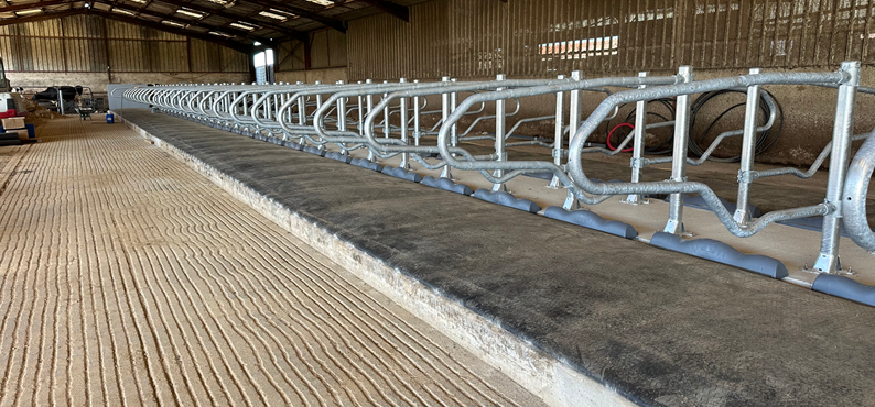- Lantakäytävän puoleinen, 40 cm matkalta 4 % viistetty reuna valuttaa nesteet lantakäytävälle